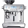 The incredible Breville Oracle brings a fully automatic process to the tedious and particular work of brewing espresso. Its built-in grinder automatically grinds to the perfect doses and tampers the portafilter with precision. At the heart of the machine are two dual boilers for simultaneous espresso extraction and milk, both with ideal temperature settings for each even under continuous usage.